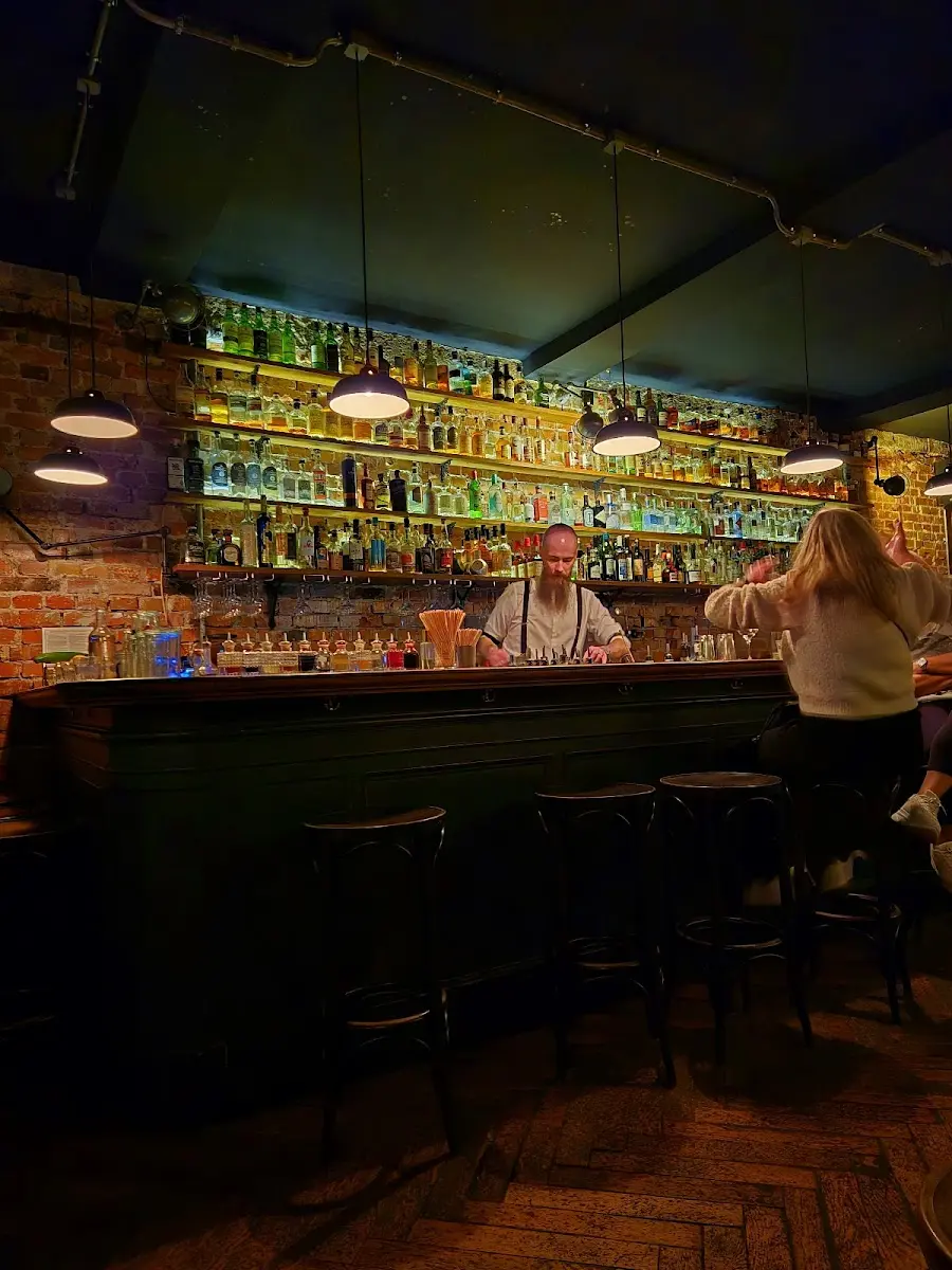 "Cosy space with dim lights. Looks like a cave with beautiful walls. We spent some time there drinking a bunch of different cocktails."
